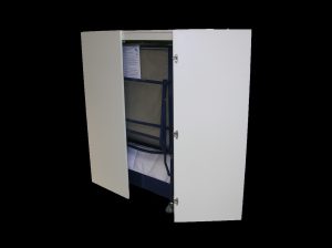 By accommodating Visitors on a bed which can be located right next to the patient’s bed and folded up, or away in the morning, without the loss of valuable day-time Ward space, or disrupting nursing routines, the requirement to provide separate rooms for visitors is completely eliminated and Hospice patients and Visitors prefer to sleep close to one another, anyway, rather than in separate rooms.