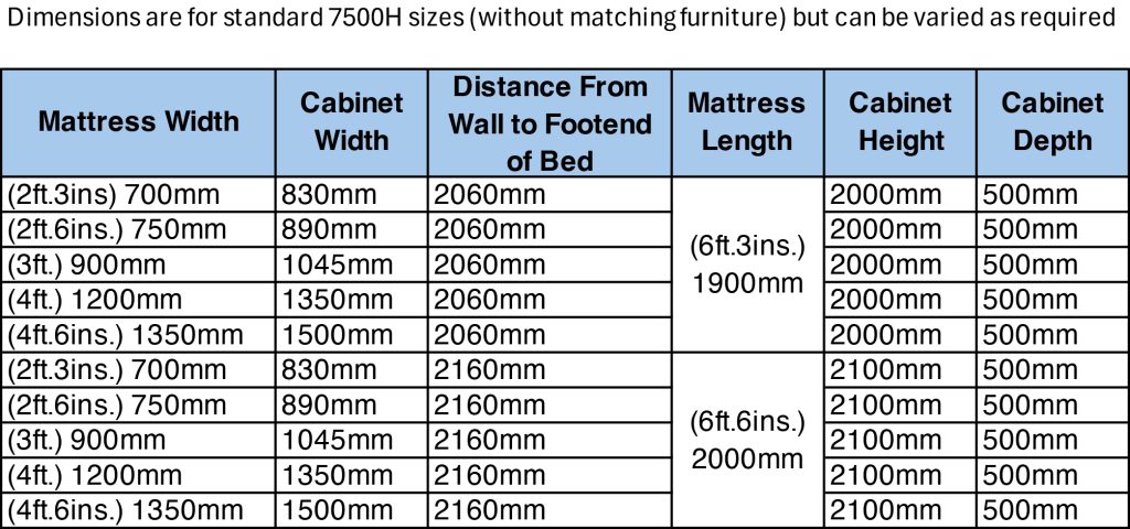 Similarly, to complement our ‘Horizontal’ ‘WISKAWAY’® 6000H Visitor Wallbeds, we can supply matching Top Boxes and/or 6600H Side Cupboards in a variety of widths, heights, depths and finishes, with a choice of internal configurations (eg. hanging and/or shelving) and optional digital/key/coin operated locks.